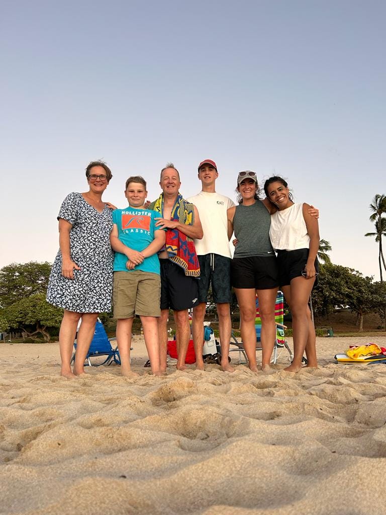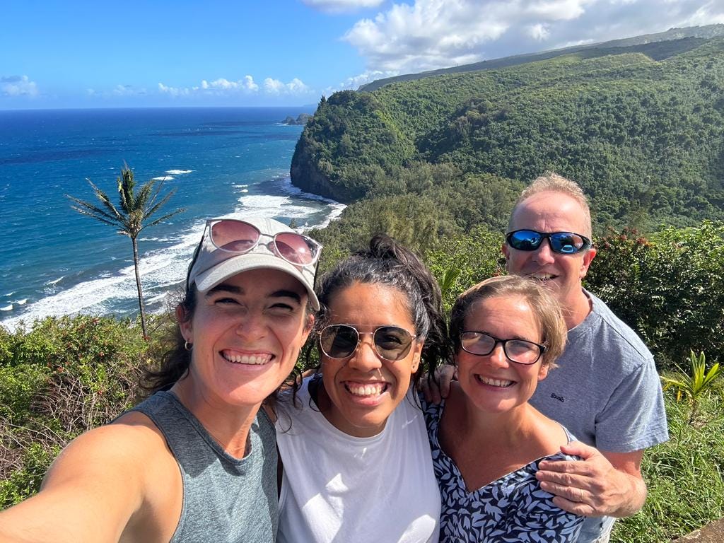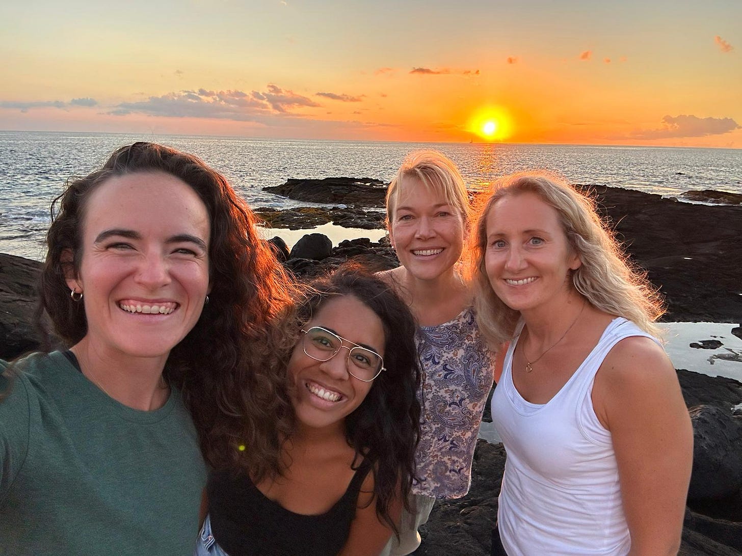 Friends — I love that I now have dear friends all over the world! Our diverse group is packed with intelligent, wholehearted people, and I am grateful to learn from them. Two weeks ago, a few of us headed to the beach for sunset with takeout from our favorite Hawaiian spot, Broke Da Mouth Grindz.